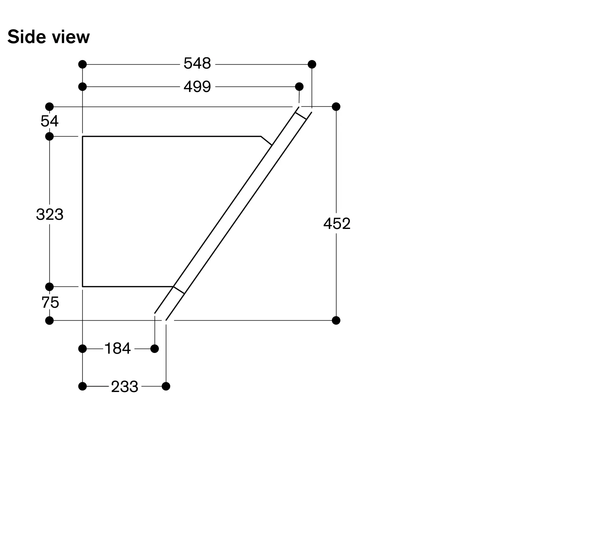 Angled vapour screen provides particularly generous free space above the cooktop