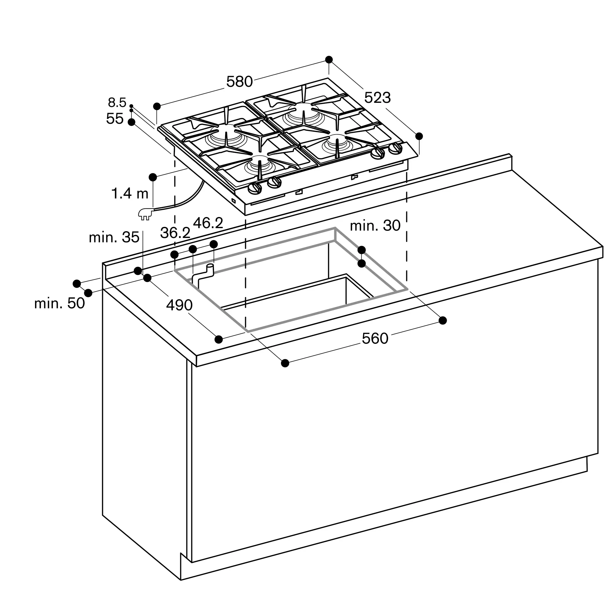 Appliance can be snapped into the worktop from above.