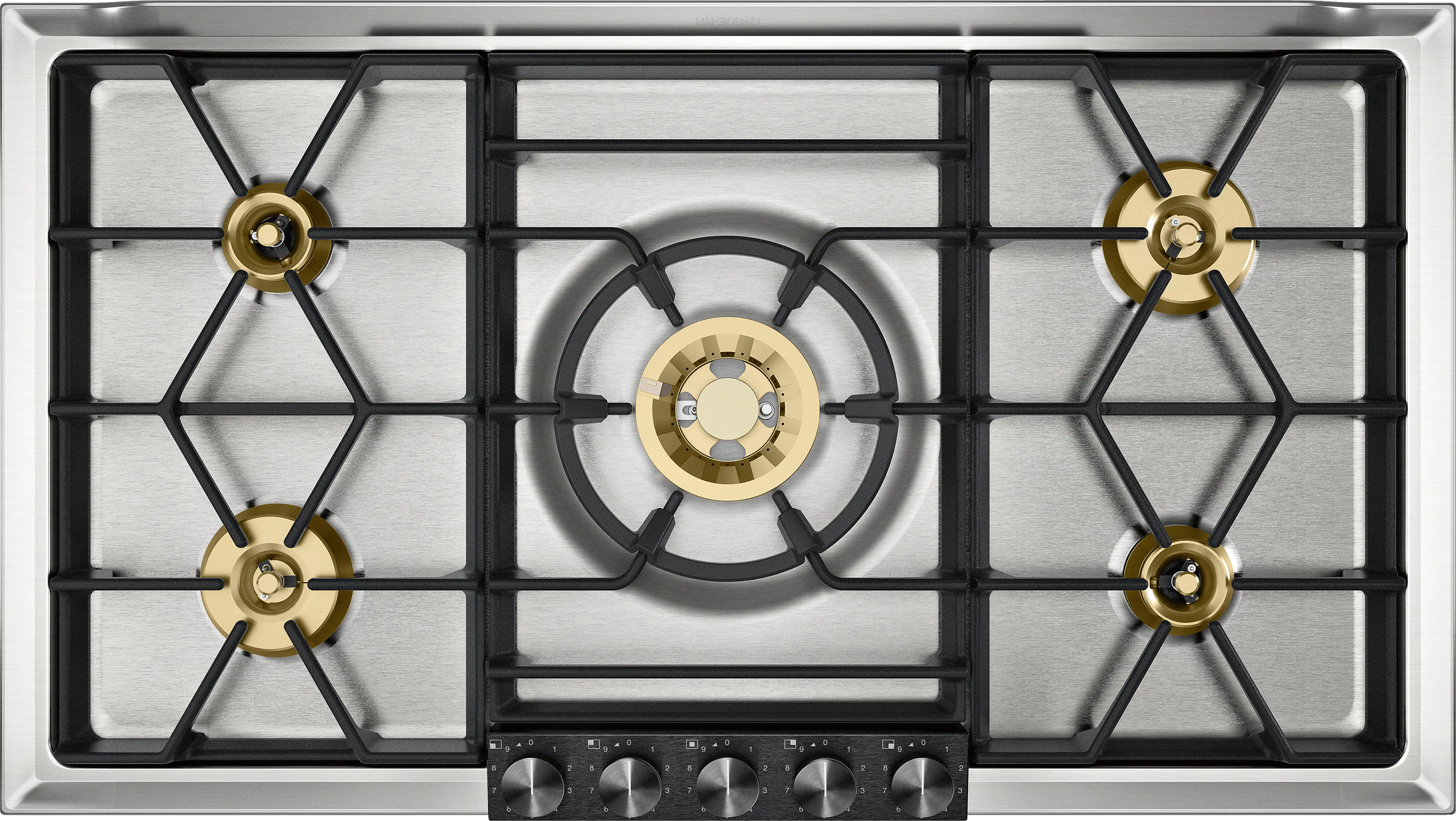 Multi-ring burner of solid, heat-resistant brass as used in professional kitchen