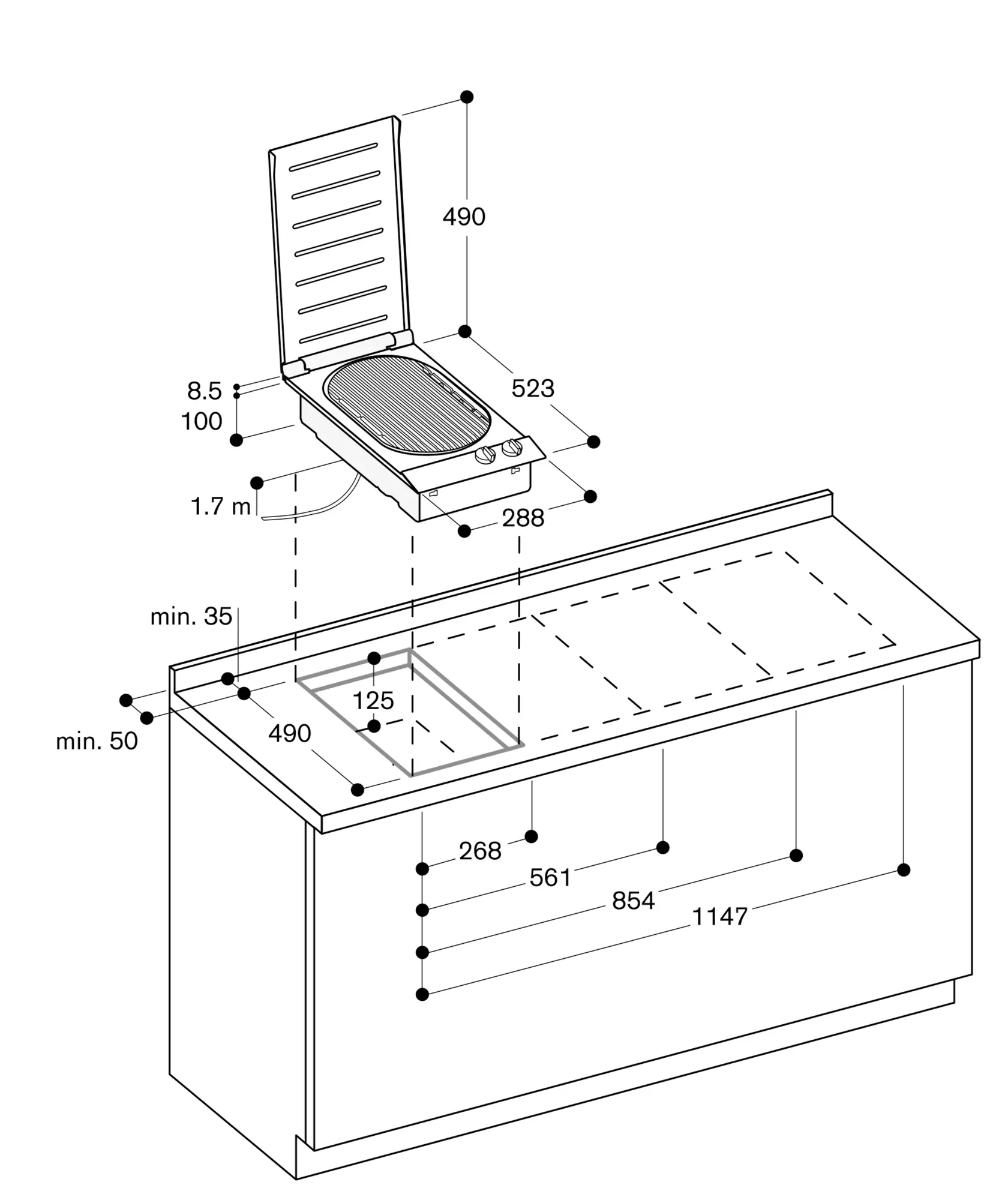 Appliance can be snapped into the worktop from above.