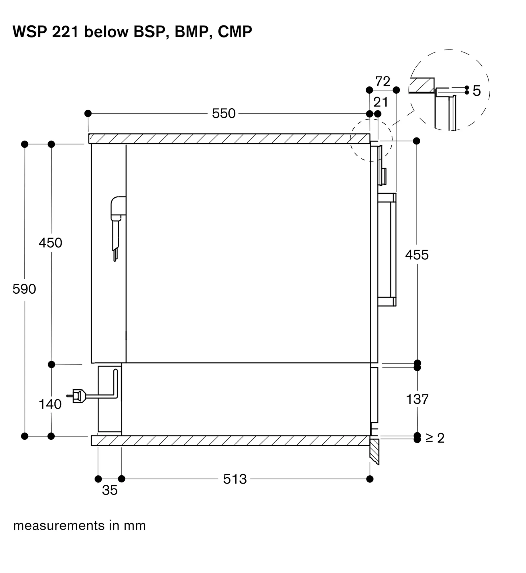 Installation of BSP/BMP/CMP directly above WSP in 59 cm niche without intermediate floor.