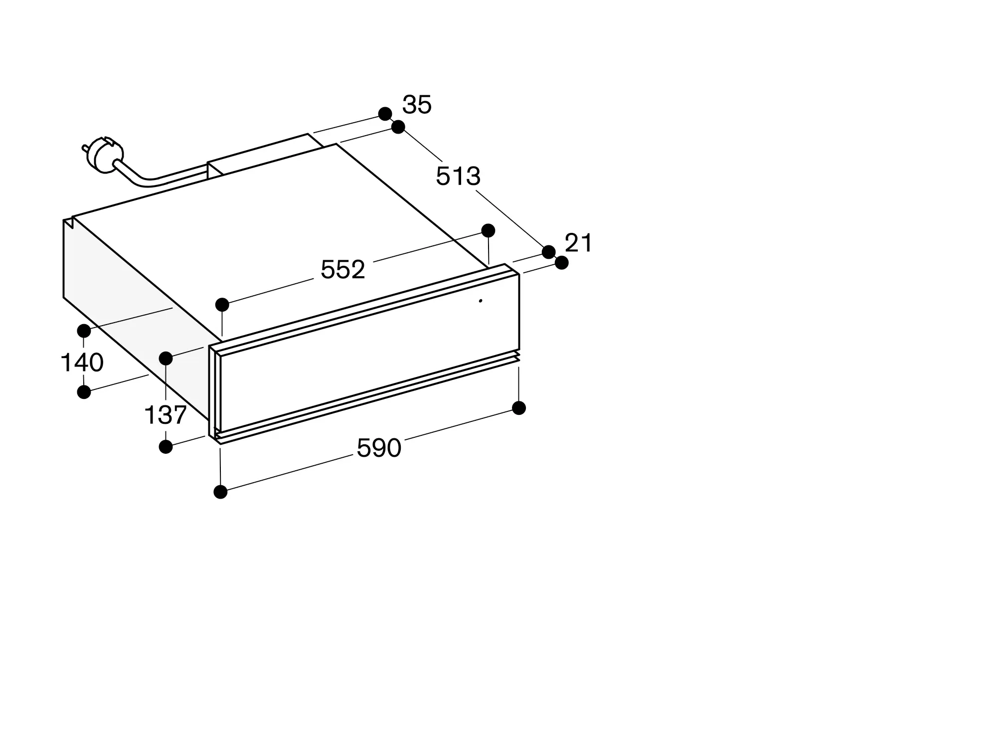 The door panel surface of the appliance extends 21 mm from the furniture cavity.