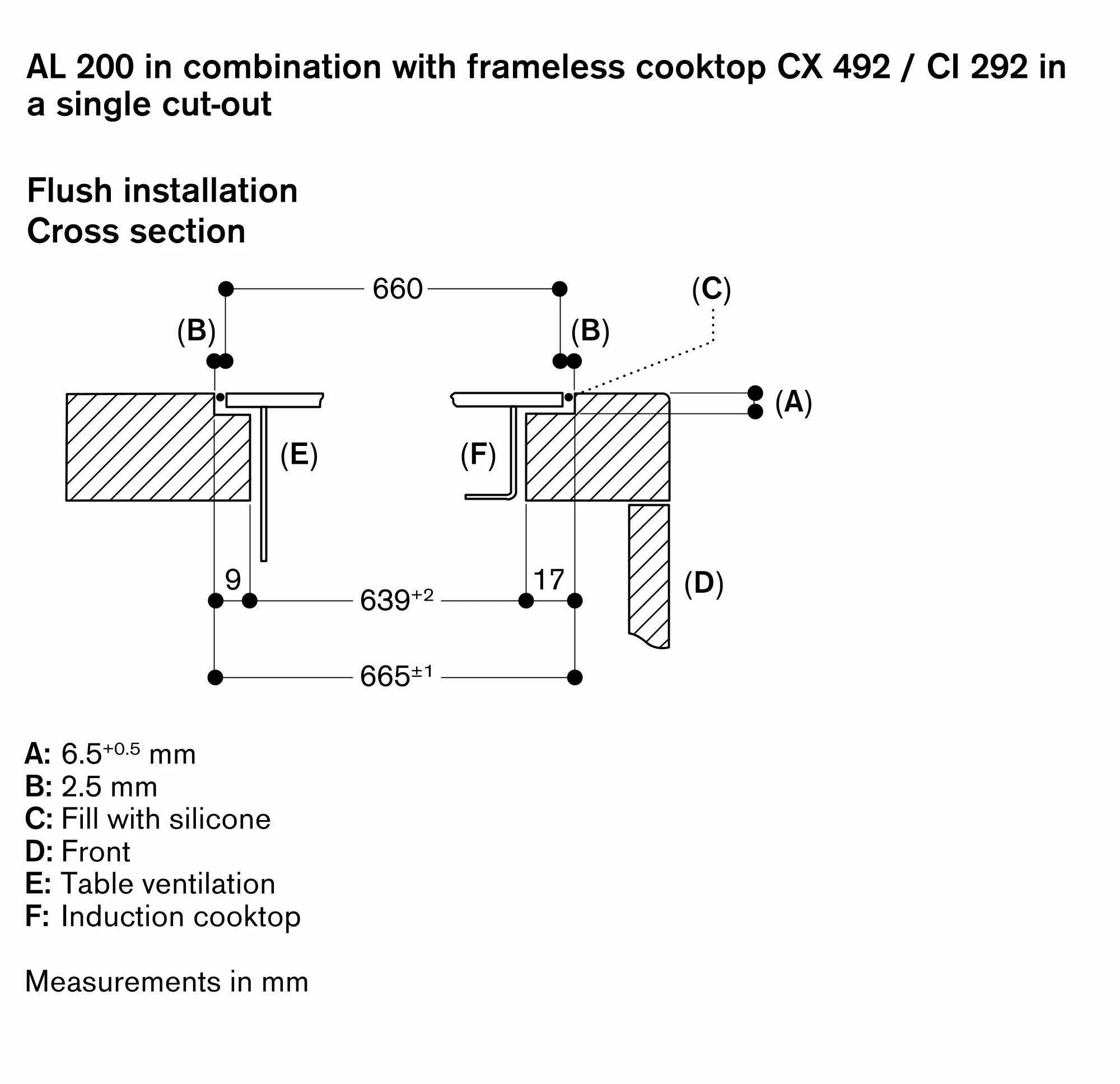 Perfect in combination with frameless induction cooktops 90 cm wide for flush mounting